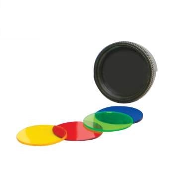 - Colored Light Filters: Comes with 4 filter lenses that are stored at the bottom: red, blue, yellow, and green.